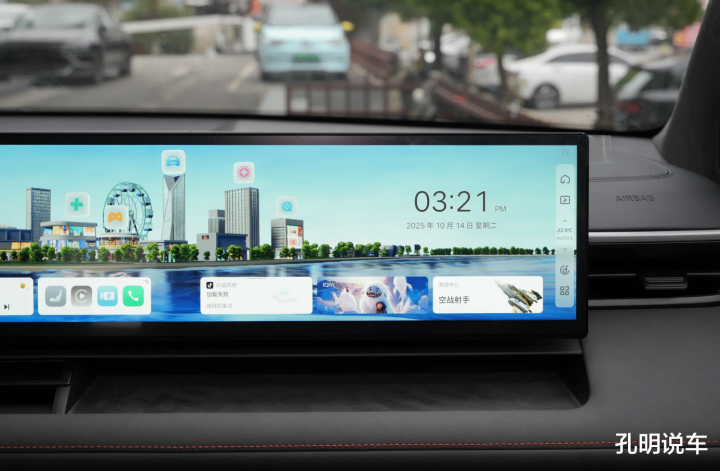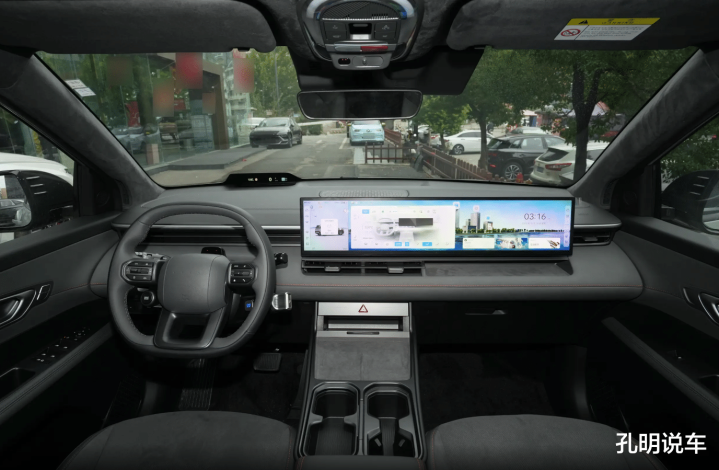内饰当然也是迎合现在的科技氛围需求,直接布局了27英寸的宽体大屏幕,这样设计确实让中控车机屏幕区域看起来没有那么大,但是整体延伸到副驾驶一侧,统一感会更强一些。硬件上搭载了高通8295车机芯片,而且这款车将要提供比较主流的辅助驾驶系统。